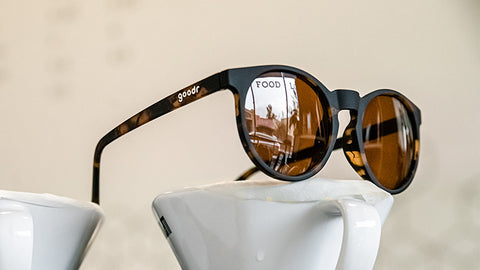 guy and girl baristas with tortoiseshell round goodr sunglasses