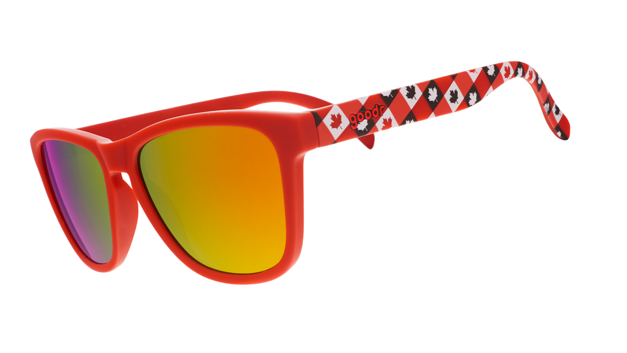 Go ahead. Say "sore-y." Make maple syrup jokes. Talk trash about hockey. CANUCK AROUND AND FIND OUT. These red maple leaf-patterned OG frames with burnt orange reflective lenses are perfect for Canada Day. You won't be sore-y! Oops. Did we just Canuck around? Guess we'll find out.