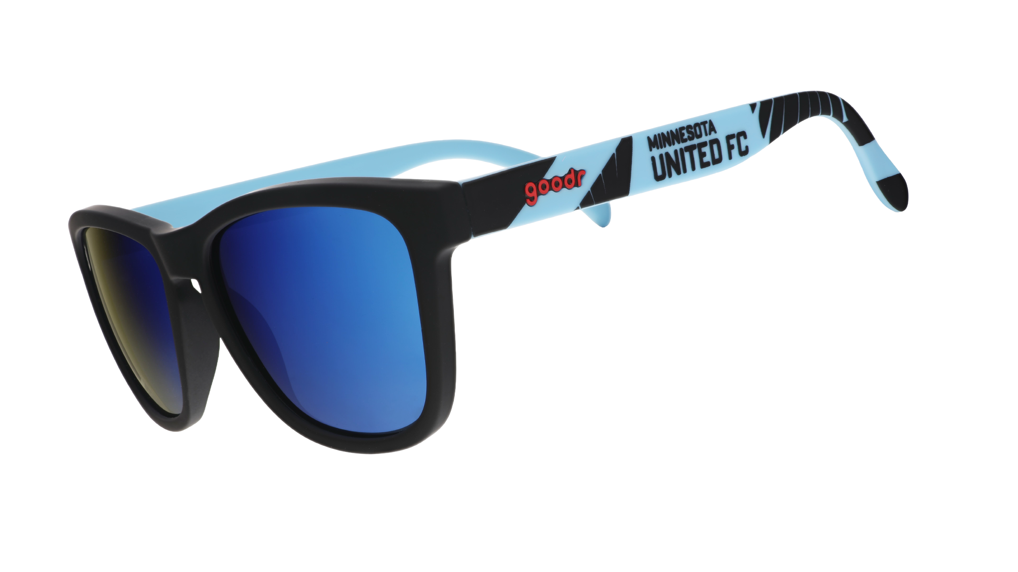 Made for loonatics only. These Minnesota United FC sunglasses bring the chill with blue and black frames and light blue reflective lenses cooler than an ice fishing trip. Perfect for repping the North Star State from the Wonderwall to your next watch party. MLS packaging included.