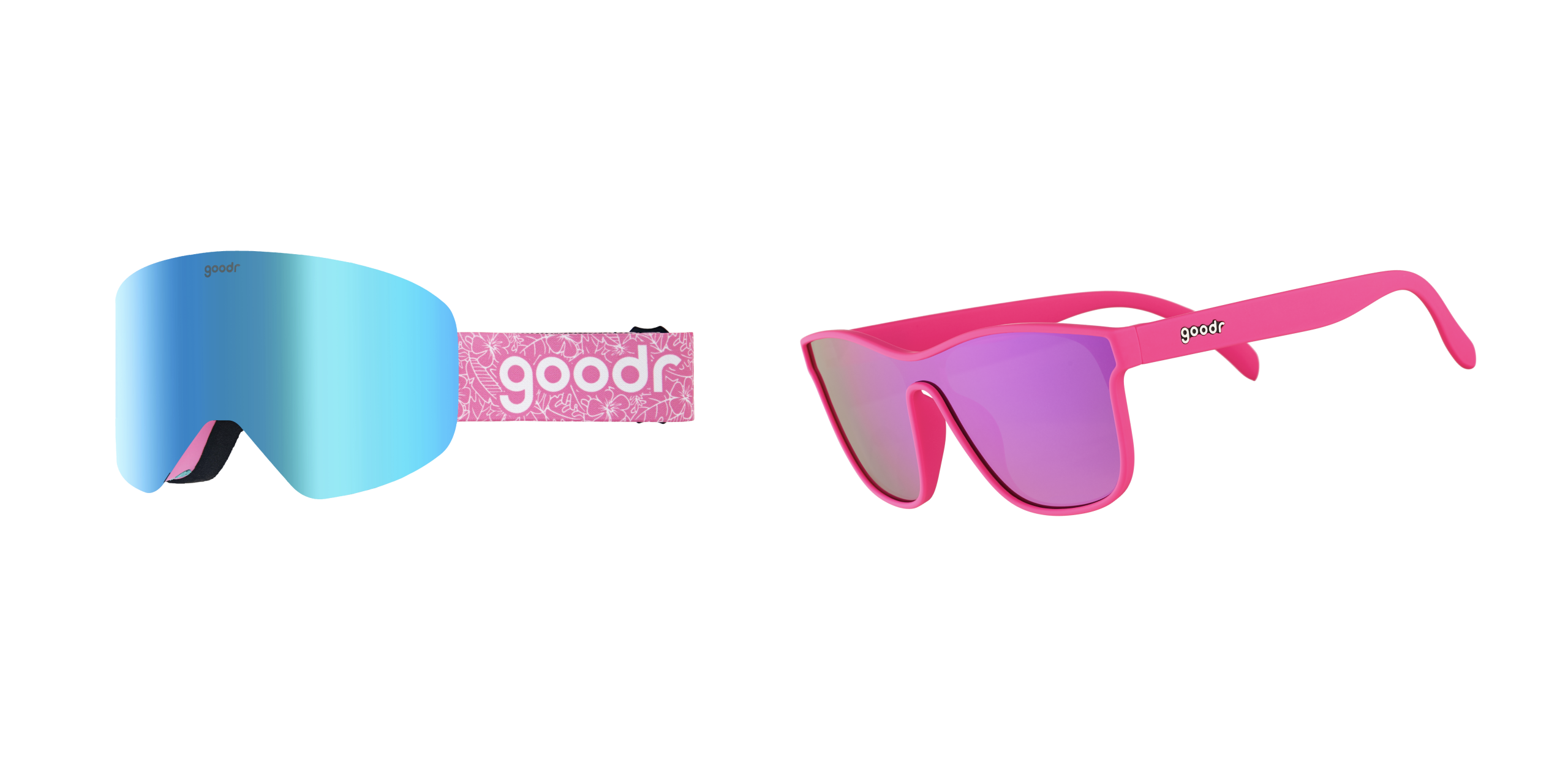 Bring the party to the slopes with these totally radical Bunny Slope Dropout Snow Gs. bright pink goggles with blue lenses. Pair them with See You At The Party Richter sunnies. our hot pink single-lens shades. Keep people guessing if you came from a futuristic rave on Mars. (We hear The Last Resort is where it’s at.)