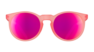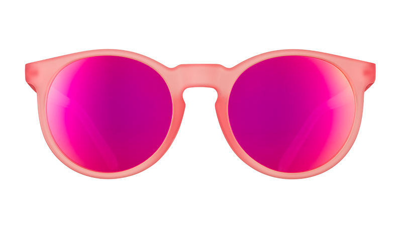 Round pink sunglasses with mirrored reflective polarized lenses so stylish you’ll actually want to pay double. Whether you’re rollerskating. running. or golfing. these fashionable bubblegum pink sunglasses have you covered with a no slip. no bounce frame & UV400 protection.