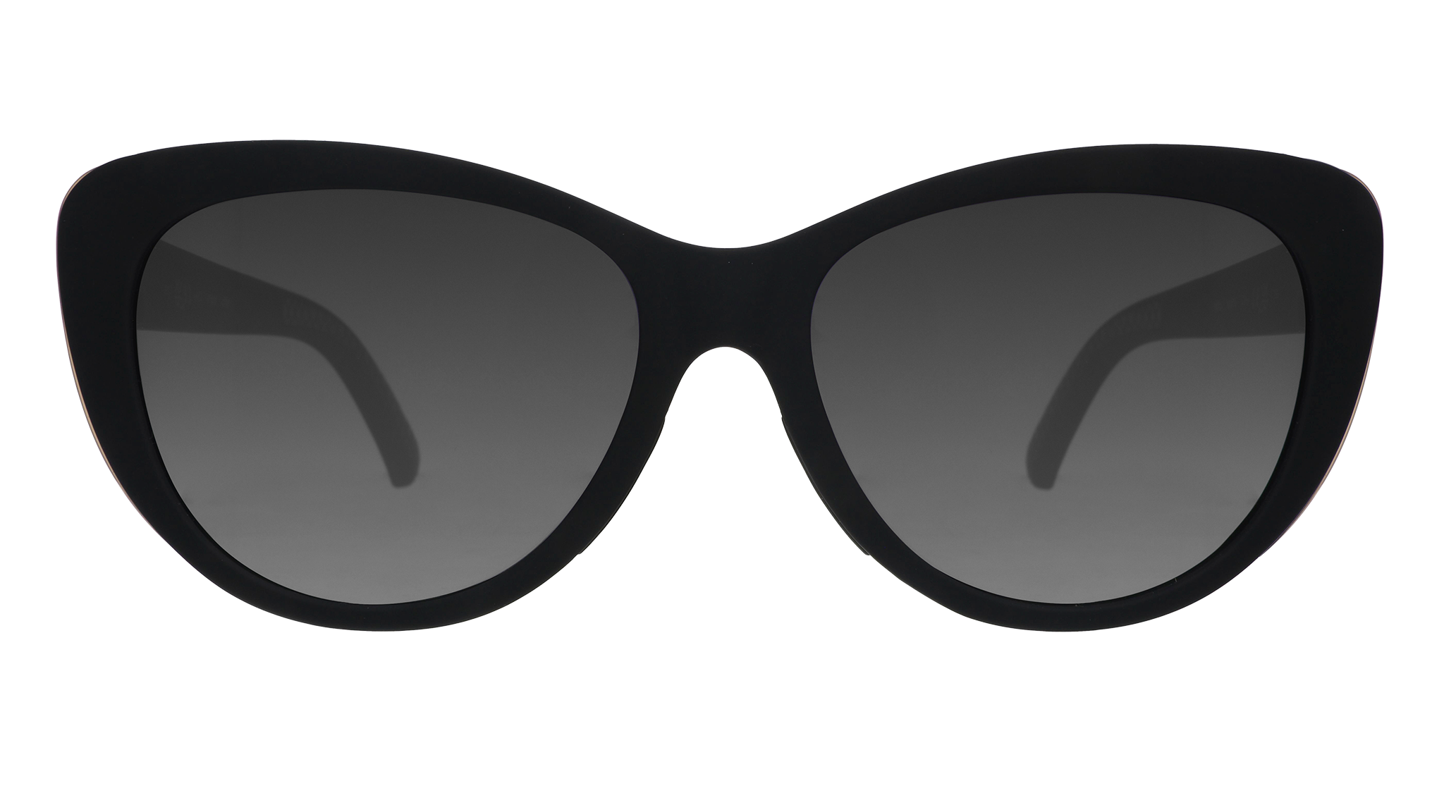 These black cat-eye sunglasses with black non-reflective lenses & light gold accents are giving fashion icon. Won’t slip or bounce when vogueing down the catwalk or the sidewalk.