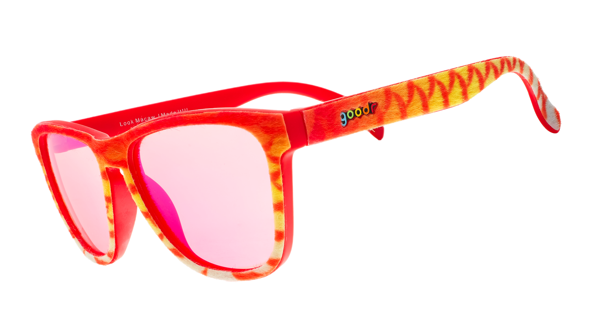 Look Macaw. I Made It!!! These limited-edition fuzzy sunnies capture the colorful. brilliant beauty of the scarlet macaw. Inspired by people’s fascination w/ observing our feathered friends. they come w/ a custom box that can be used as a birdhouse!