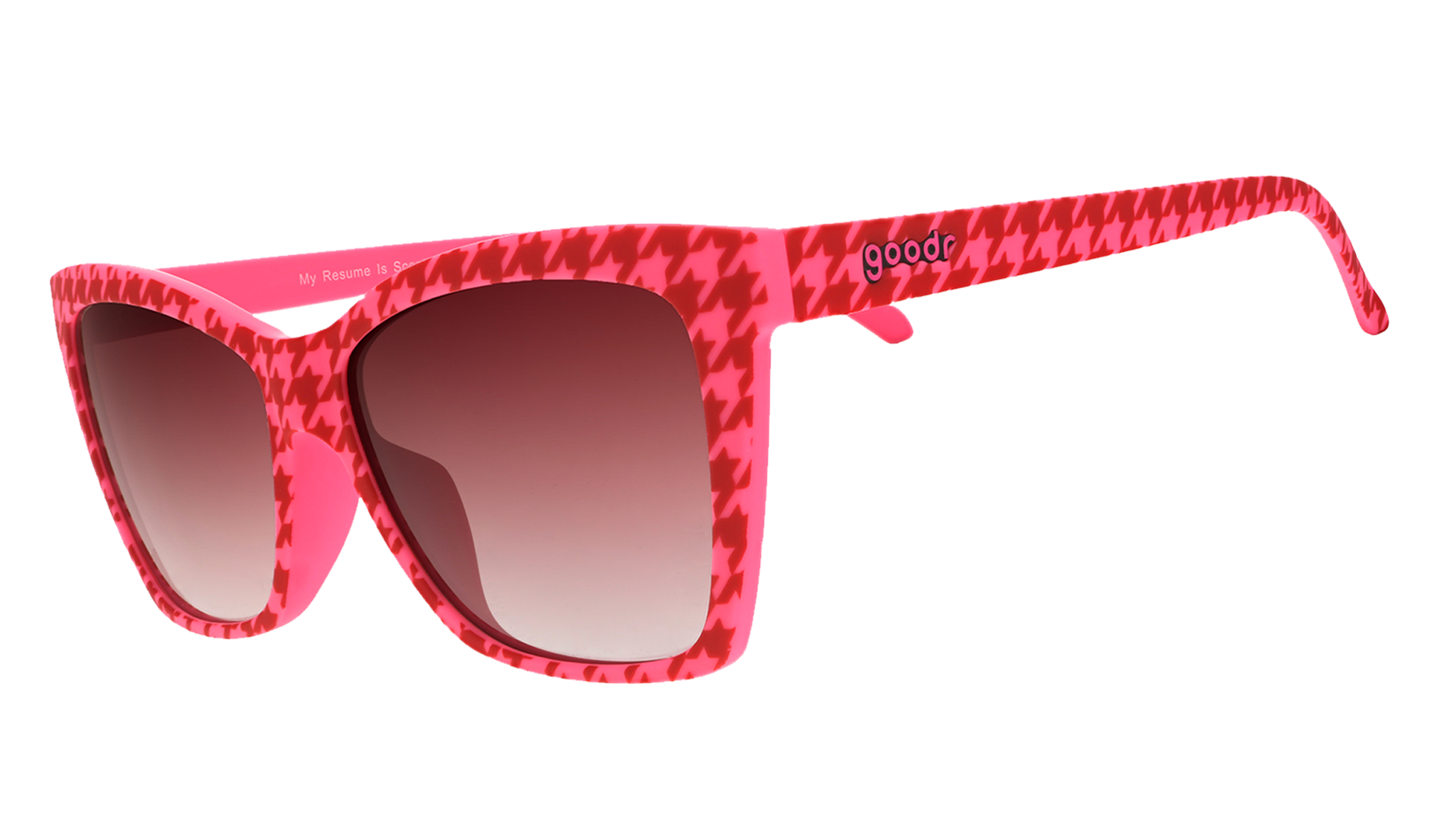 Fashionable peeps know a scented resume helps you stand out in a stack of candidates. Duh. (If only we could figure out how to transmit smells online.) Bet the resume for these pink & red houndstooth Pop Gs w/ rose gradient lenses reeks of success.