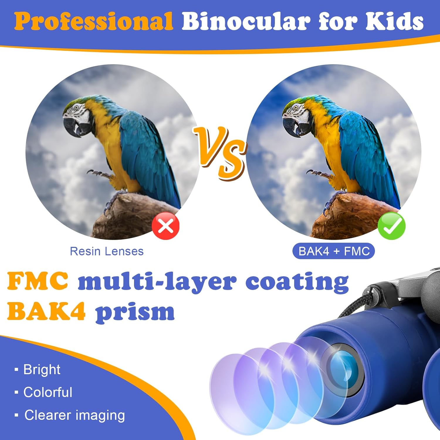 - ☆Crystal Clear View: Superb high-resolution maginifcation of 8X with the 7.2°viewing angle. your child can see the entire visual wide field for capturing objects easily. The BAK 4 FMC prism green multi-layer broadband coated can control optical reflection to create crisp and colorful images.