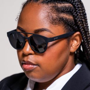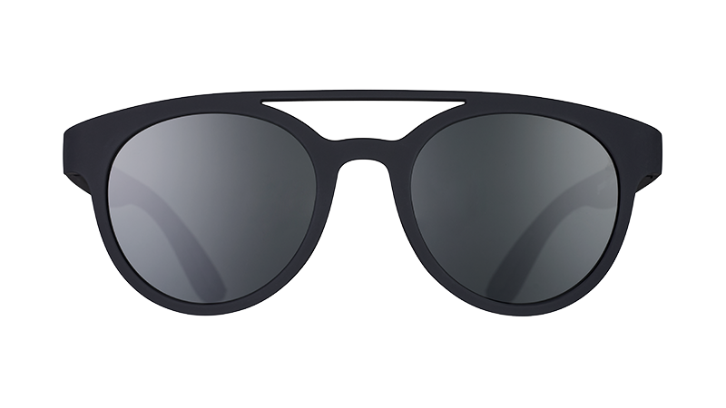 These black frames with black non-reflective lenses and a distinguished double-nose bridge were made for international people of mystery. Won’t slip or bounce as you zipline down the Swiss Alps to save a high-ranking government official from subpar pâté at a cocktail soiree.