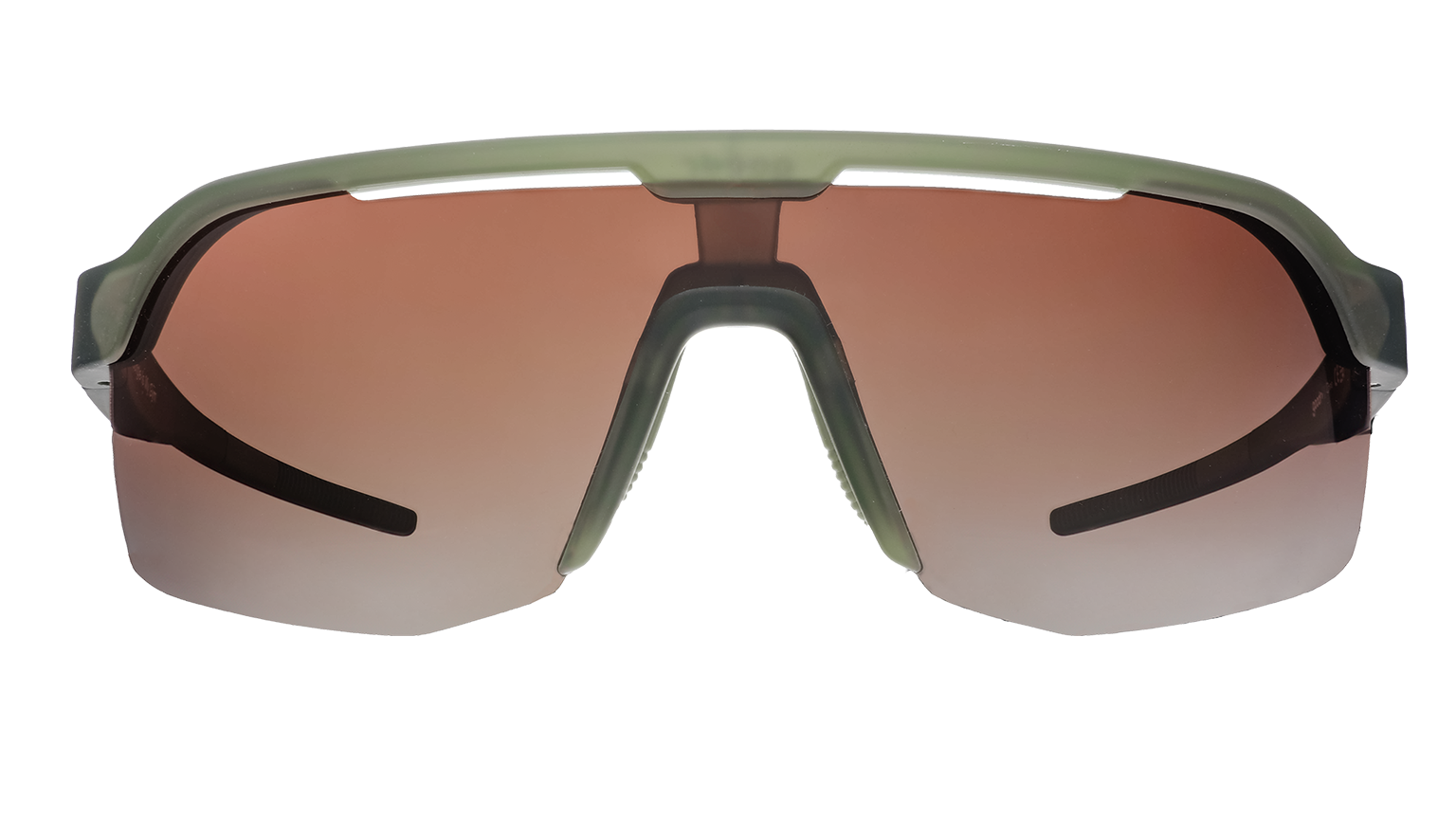 Green shield sunglasses w/ half-rim frames & amber gradient lenses shield you from light above while giving you better visibility of your feet. Won’t slip or bounce while you deadlift fallen palm trees or wrassle a gorilla for the last coconut water.