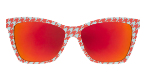 The pattern is called houndstooth because it resembles the jagged teeth of a dog. There you have it. The Truth About Houndstooth. If they ever make a TV movie about it. these vibrant Pop Gs with burnt orange reflective lenses would be the star.