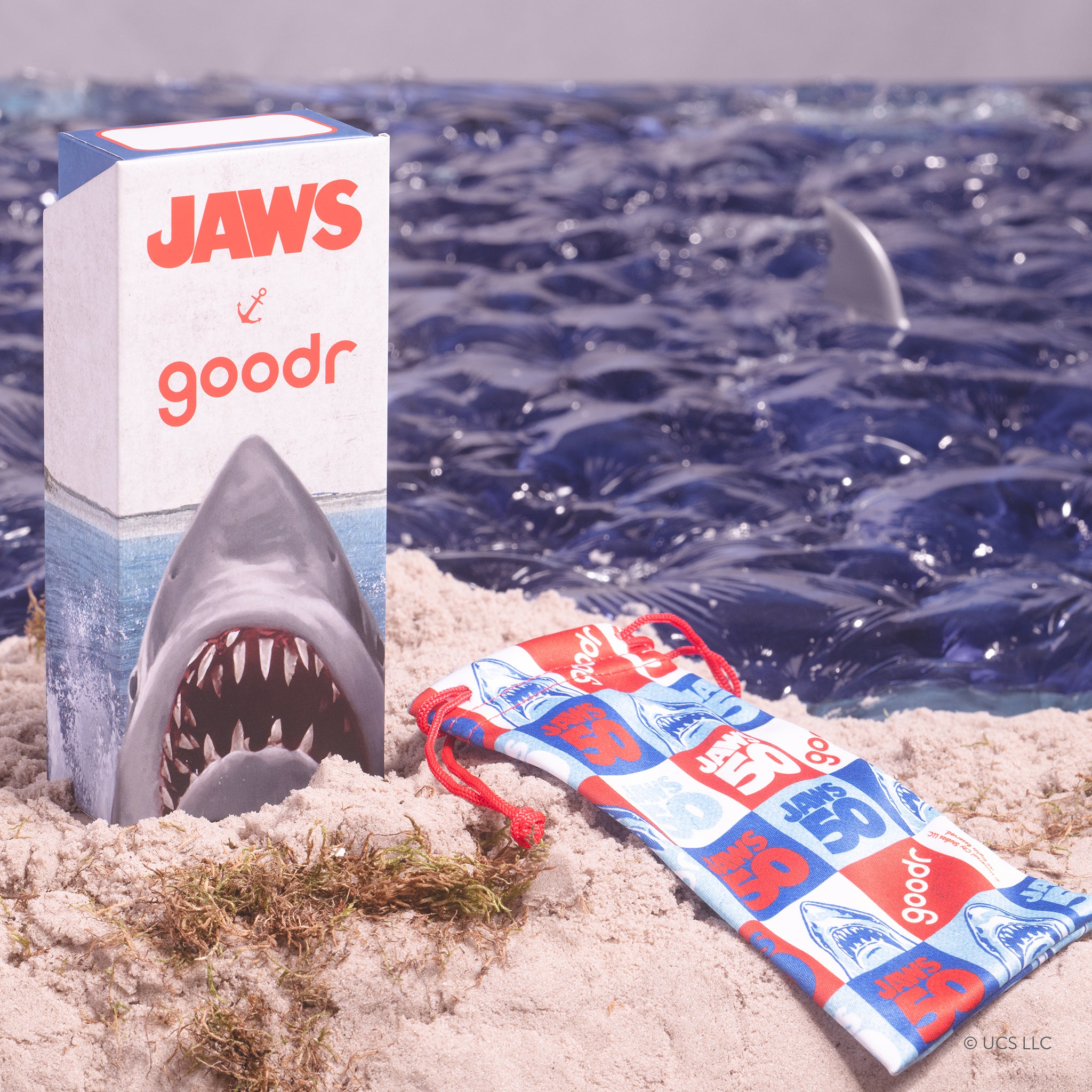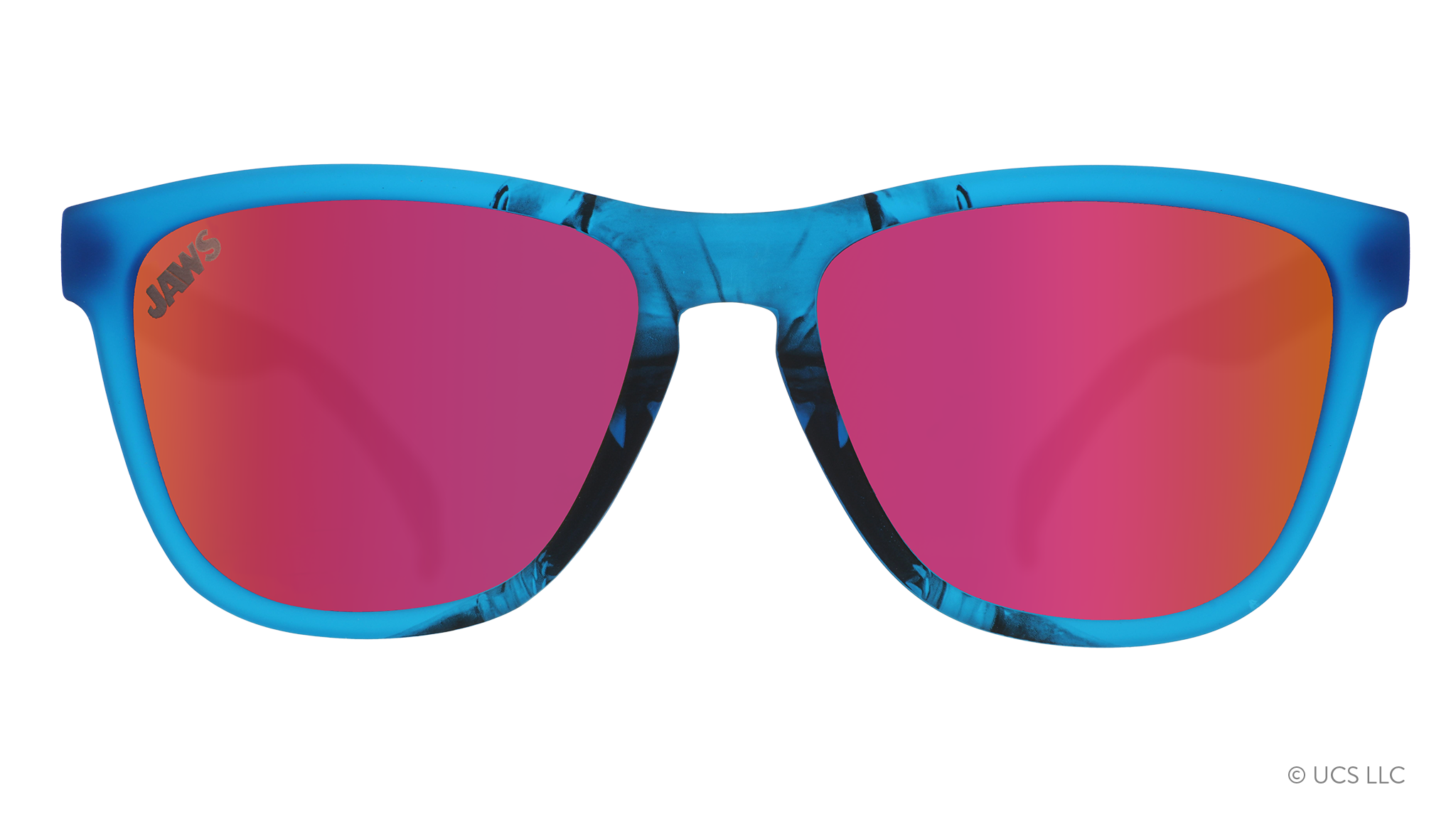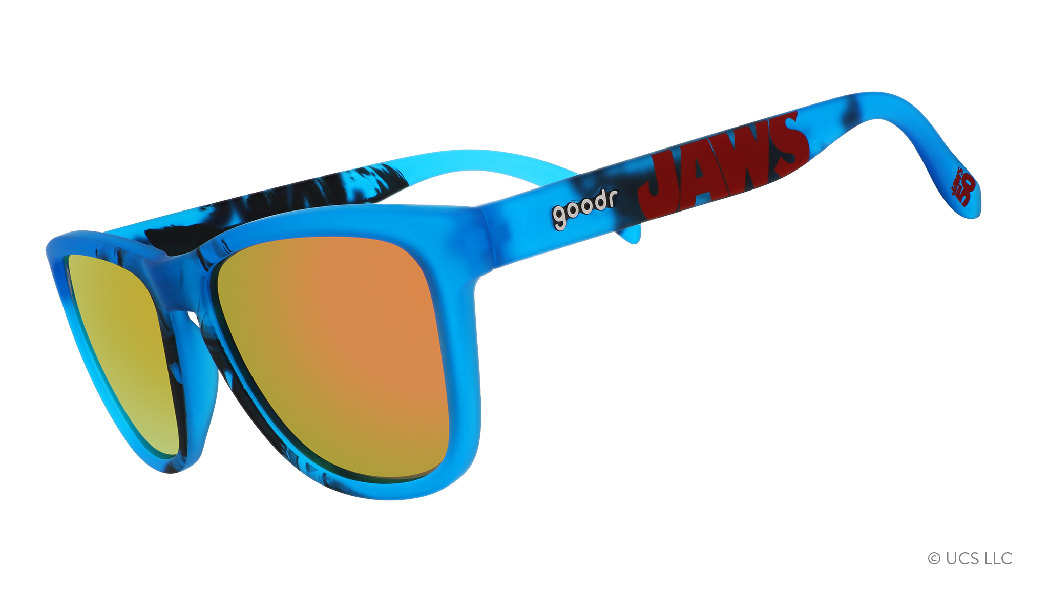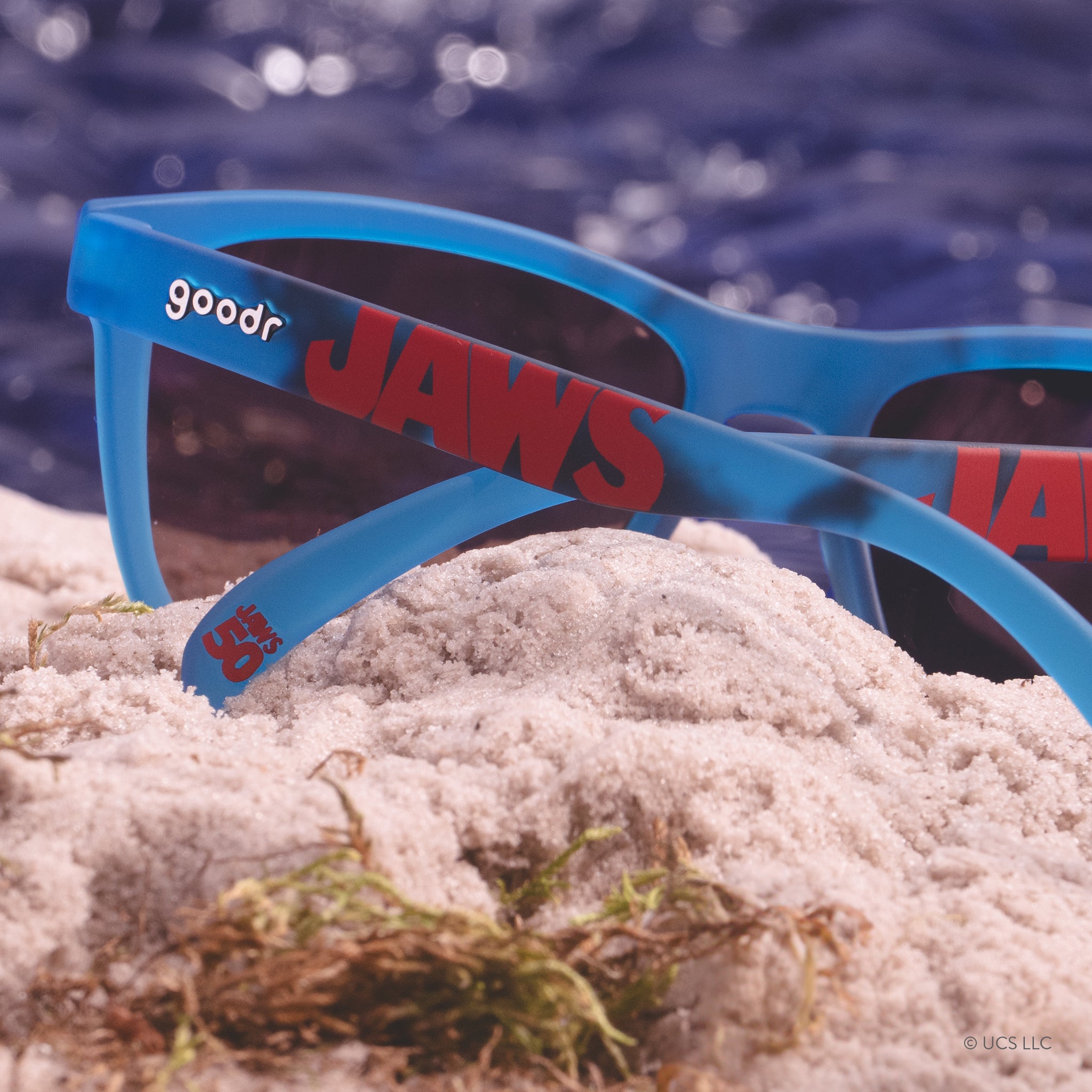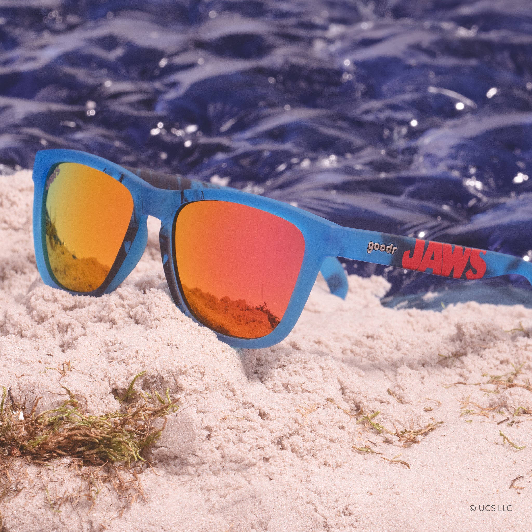 Don’t go in the water. But DO grab these limited-edition Jaws sunglasses. With blue translucent OG frames. burnt orange reflective polarized lenses & terrifying custom packaging. you can celebrate 50 years of Jaws in style. Smile. you son of a b*tch.